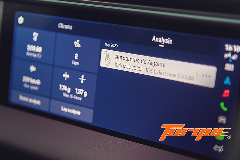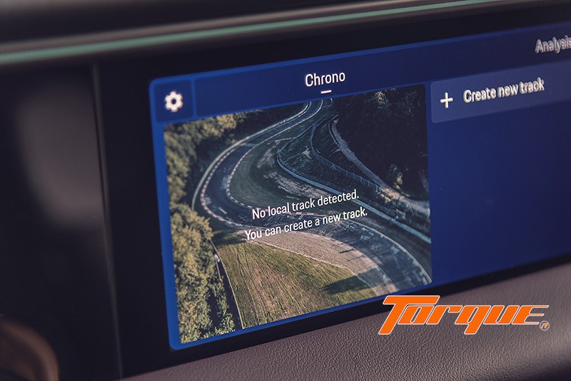 แพคเกจ Sport Chrono สั่งติดตั้งเพิ่มเติมเช่นกัน สามารถใช้งานฟังก์ชั่นต่างๆ ได้ผ่านหน้าจอส่วนกลาง นั่นรวมไปถึงการบันทึกเวลต่อรอบ, เรียกดูข้อมูลด้านการขับขี่ต่างๆ, เพิ่มสนามแข่งใหม่ และวิเคราะห์การขับขี่ในสนามแข่งของคุณ