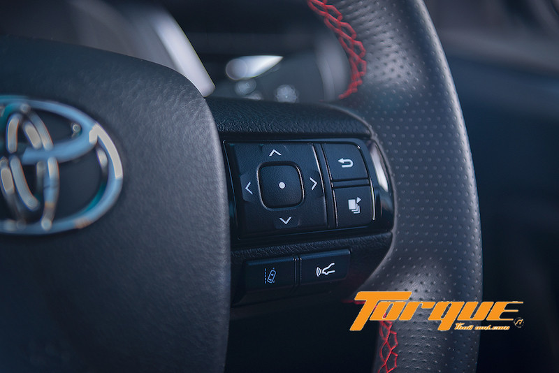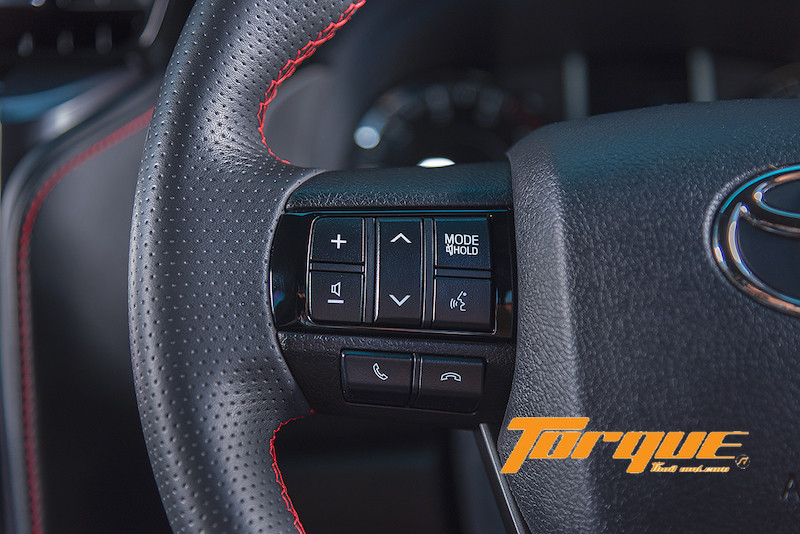 เก็บงานตะเข็บด้ายโทนสีแดง และประทับสัญลักษณ์ GR รับกันอย่างลงตัวกับพวงมาลัยหุ้มหนังแบบ Soft Touch ตกแต่ง Center mark พร้อมการเดินตะเข็บด้ายสีแดง และสัญลักษณ์ GR เช่นกัน