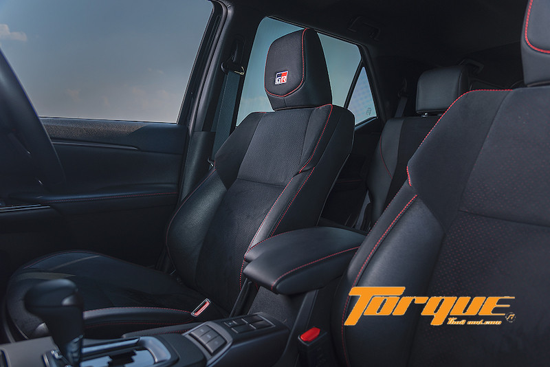 ภายในห้องโดยสารยังคงมากับภาพรวมที่คุ้นตา แต่เพิ่มมาด้วยรายละเอียดของความเป็น GR Sport เพื่อปลุกอารมณ์ความเร้าใจ เช่น การเลือกใช้โทนสีดำ ตัดสลับสีแดง ขณะที่เบาะนั่งก็มีความพิเศษกว่า ด้วยวัสดุหนัง Suede แบบเจาะรู โทนสีดำ