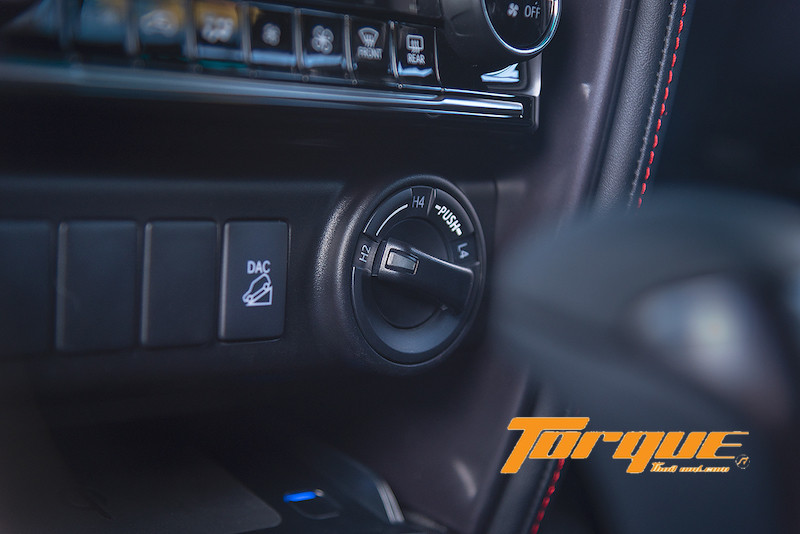 มากไปกว่านั้นก็คือ ขีดความสามารถในการเดินทาง ด้วยเพราะ Toyota Fortuner 2.8 GR Sport 4WD มากับอาวุธที่ครบเครื่อง ซึ่งเราหมายถึงระบบขับเคลื่อน 4 ล้อ ที่เลือกปรับเปลี่ยนได้ถึง 3 รูปแบบให้เหมาะสมกับสถานการณ์ ทั้งแบบขับเคลื่อน 2 ล้อความเร็วสูง (2H), ขับเคลื่อน 4 ล้อความเร็วสูง (4H) หรืออยากจะผ่านอุปสรรคอะไรที่ยากๆ ก็ยังมีระบบขับเคลื่อน 4 ล้อความเร็วต่ำ (4L) ให้ใช้