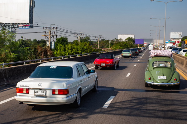 ขบวนคาราวานประกอบด้วย รถโบราณ และรถคลาสสิคกว่า 50 คัน นำโดย BMW ISETTA 300 ปี 1961, MINI COOPER MARK I ปี 1960, FIAT TOPOLINO 500C ปี 1949 ฯลฯ พร้อมเจ้าของรถแต่งตัวย้อนยุค ออกเดินทางจาก พิพิธภัณฑ์คนรักรถ AUTO RENDEZVOUS MUSEUM-BANGKOK ถนนประชาอุทิศ กรุงเทพฯ