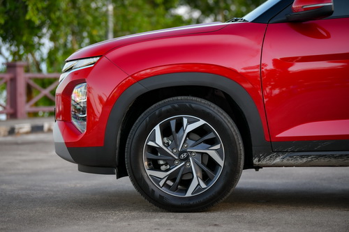 ภายนอกรถยนต์เครต้า บริเวณกระจกหน้ารถที่เปิดกว้างขณะเดียวกันให้การปกป้อง ล้ออัลลอยแบบ Diamond cut ขนาด 17 นิ้วให้ความรู้สึกสปอร์ต มีมิติ กลมกลืนไปกับรูปลักษณ์ทั้งหมดของตัวรถ