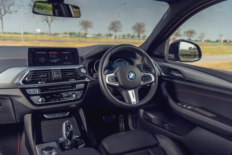 แต่ผมก็แค่แกล้งเขินด้วยการง่วนกับการสำรวจภายในของ BMW X4 xDrive20d M Sport ซึ่งบอกตรง ๆ ว่าผมคุ้นเคยกันพอสมควร เพราะนี่ไม่ใช่ครั้งแรกระหว่างผม และ BMW X4 xDrive20d M Sport แต่บางทีถูกสายตาจับจ้องนาน ๆ