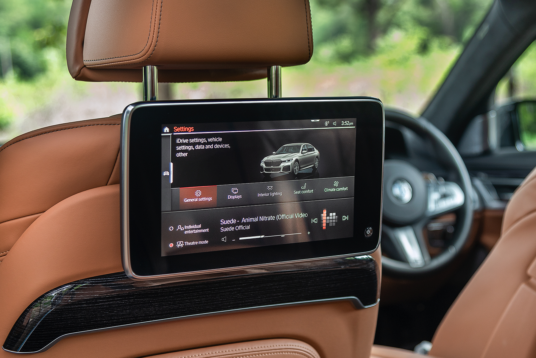 จอระบบสัมผัสขนาด 10 นิ้ว แบบ Full HD สำหรับเบาะคู่หลัง มาพร้อมกับเครื่องเล่น Blu-ray นอกจากนั้นคุณยังสามารถเข้าถึงระบบนำทางและฟังก์ชั่นออนไลน์ต่างๆ ได้จากที่นี่ หรือสั่งการผ่านหน้าจอ 7 นิ้วของแทปเล็ต BMW Touch Command ได้อีกด้วย โดยระบบสามารถควบคุมการทำงานได้ครอบคลุมทุกฟังก์ชั่นของรถ ไม่ว่าจะเป็นระบบปรับอากาศ, แสงไฟในห้องโดยสาร, ปรับเบาะ หรือแม้แต่ระบบนำทาง นอกจากนั้น คุณยังสั่งการมันได้แม้จะถือไว้นอกรถก็ตาม