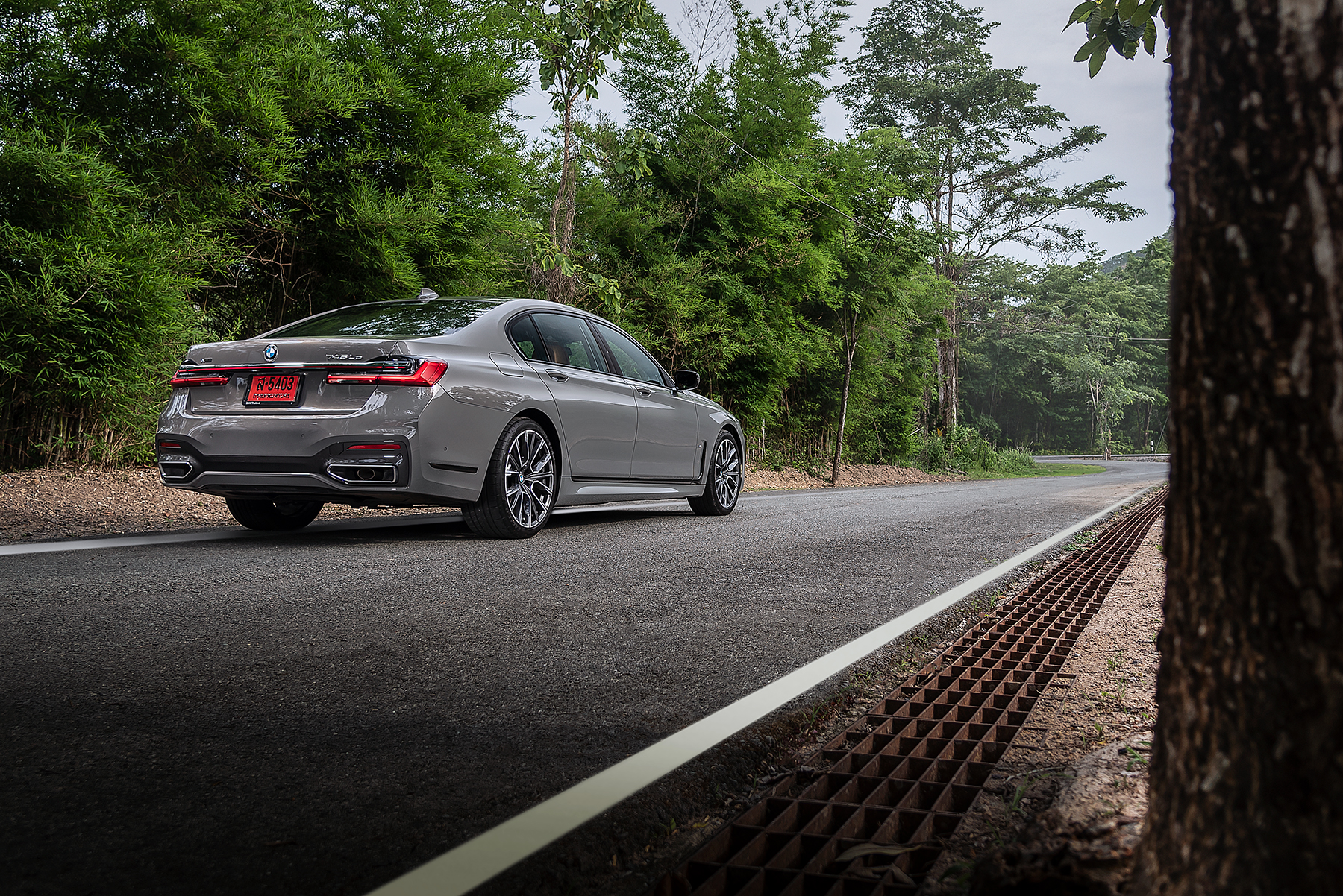 เมื่อเฆี่ยน 745Le ให้หนักยิ่งขึ้นบนถนนที่คดเคี้ยว จะเผยให้เห็นความเฉียบคมของระบบบังคับเลี้ยวตามแบบฉบับของ BMW มันสื่อสารและตอบสนองได้น่าพอใจ แต่เบาและไวเกินไปในการเลี้ยวไปมาแบบโค้งต่อโค้งเช่นนี้ น้ำหนักของรถก็เริ่มสร้างปัญหาเช่นกัน แม้ช่วงล่างจะพยายามดันตัวรถฝั่งนอกโค้งขึ้น ทว่าซีดานคันมหึมาก็ยังเอียงตัวค่อนข้างมากและเริ่มแสดงอาการอันเดอร์สเตียร์ออกมา ถึงตรงนี้ระบบขับเคลื่อนสี่ล้อ xDrive จะยื่นมือเข้ามาบริหารแรงบิดของล้อหน้าและหลังให้เหมาะสม เพื่อให้คุณและ 745Le สามารถออกจากโค้งได้อย่างสวยงาม