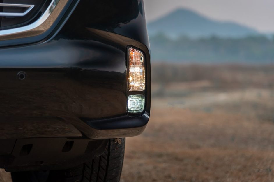 ติดตั้งไว้เป็นชุดเดียวกับไฟเลี้ยว ที่ผมชอบเป็นพิเศษคือฝากระโปรงหน้าที่ยกส่วนกลางสูง ให้ความรู้สึกแข็งแกร่งบึกบึนสมกับเป็นรถกระบะที่สมบุกสมบัน และเมื่อมองจากด้านหน้าตรงๆ ยังดูเหมือนรถ SUV อีกด้วย