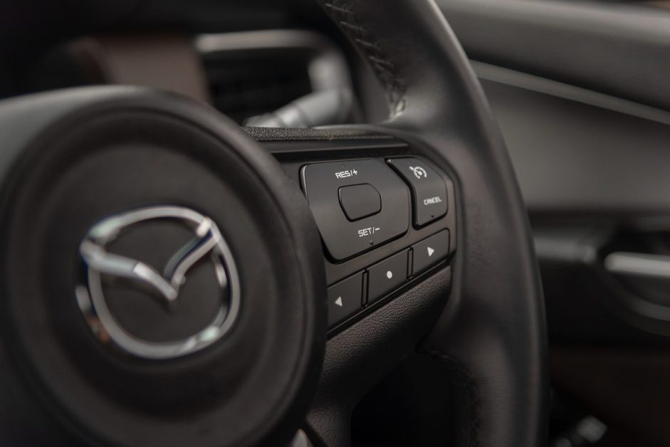 ส่วนหน้าของรถบ่งบอกความเป็น Mazda ได้โดยไม่ต้องชำเลืองดูโลโก้เสียด้วยซ้ำ กระจังหน้าขนาดใหญ่เต็มพื้นที่ส่วนกลาง ทำให้ไม่จำเป็นต้องเพิ่มช่องรับอากาศที่กันชนหน้า ไฟหน้า LED ออกแบบให้มีขนาดกะทัดรัดช่วยเสริมภาพลักษณ์แบบสปอร์ตได้เป็นอย่างดี ส่วนสปอตไลต์ก็เป็นแบบ LED เช่นกัน