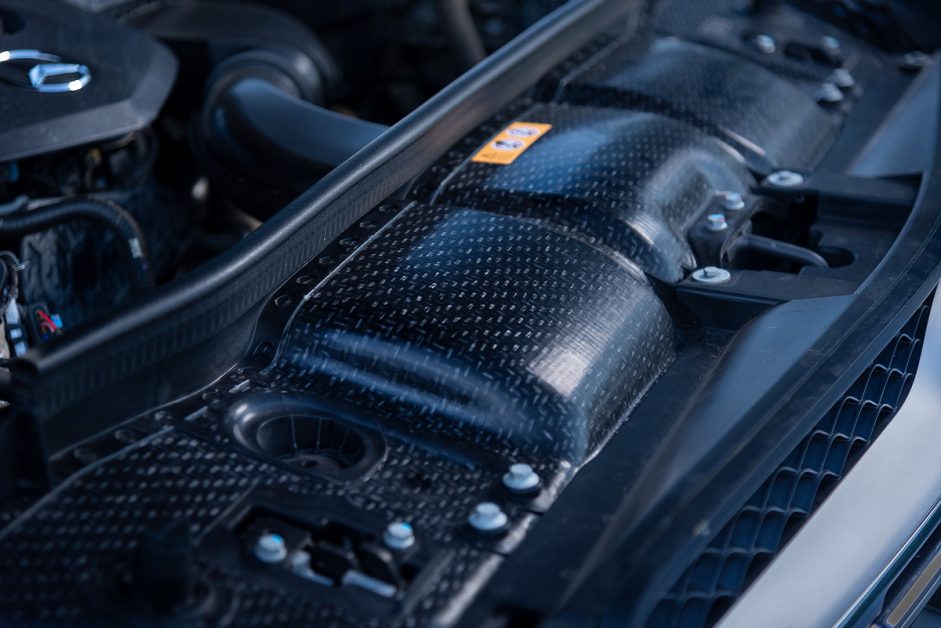 ส่วนหน้าของรถ มีการใช้แผ่นออร์กาโนซึ่งเป็นวัสดุผสมเสิรมแรงด้วยเส้นใยและผ่านการบีบอัดขึ้นรูปเพื่อให้ได้ความแกร่งสูง ทั้งยังมีน้ำหนักเบากว่าโลหะอย่างมาก มันสามารถนำมาหลอมรวมให้เป็นชิ้นเดียวกับโพลีโพรพีลีนได้จึงไม่จำเป็นต้องใช้วิธีเชื่อม (ซึ่งมีโอกาสแยกออกจากกันได้) อีกต่อไป กล่าวโดยรวมก็คือ วัสดุผสมนี้ช่วยให้น้ำหนักเบากว่าปกติถึง 30%, ลดการบิดตัวของโครงสร้าง และเพิ่มความแข็งแกร่งเมื่อเกิดแรงปะทะ (ชนจากด้านหน้า) นอกจากนั้น ยังไม่จำเป็นต้องพ่นสีเนื่องจากพวกมันไม่เป็นสนิม คุณจึงเห็นพื้นผิวสุดพิเศษนี้ได้อย่างชัดเจน