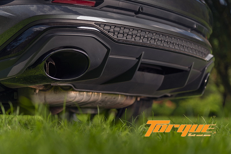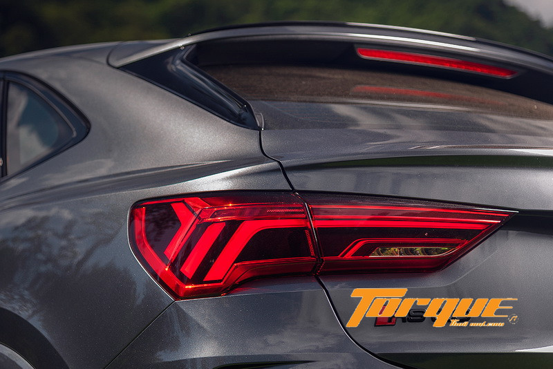 ในประเทศไทย RS Q3 มีจำหน่ายเฉพาะตัวถังแบบท้ายลาด ‘Sportback’ เท่านั้น นั่นหมายถึง ส่วนท้ายที่บีบต่ำลง 45 มม. จึงมีพื้นที่เหนือศีรษะของผู้โดยสารเบาะหลังจะน้อยกว่าตัวถังแบบมาตรฐาน ผู้นั่งที่ตัวสูงหน่อยอาจไม่ค่อยสบายนักหากต้องอยู่ตรงนี้เป็นเวลานานๆ ส่วนพื้นที่เก็บสัมภาระท้ายรถน้อยกว่า (ในแนวตั้ง) รุ่นท้ายปกติ 125 ลิตร ตัวถังตกแต่งด้วยกันชนหน้าและหลัง รวมถึงสปอยเลอร์หลังคา แบบ RS เมื่อรวมกับโป่งล้อทั้งสี่ที่กว้างขึ้น 10 มม. เมื่อเทียบกับ Q3 รุ่นมาตรฐาน ส่งให้เวอร์ชั่น RS ดูดุดันทรงพลังอย่างยิ่ง… คันทดสอบของเรามาพร้อมกับสีเทาเข้ม ‘Daytona Grey’ และยังมีสีพิเศษเฉพาะรุ่น RS ให้เลือก 2 สี คือ เทาอ่อน ‘Nardo Grey’ และสีที่เราแนะนำคือ สีเขียว ‘Kyalami Green’ ที่ให้อารมณ์แบบ Lamborghini Urus