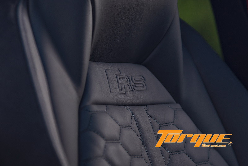 เบาะนั่ง ‘RS Sport’ รูปทรงสวยงามและกระชับลำตัว ทว่านั่งสบายมากทีเดียว หุ้มด้วยหนังแท้ Fine Nappa สลับกับ Alcantara พร้อมการปักแบบรังผึ้งและปั๊มสัญลักษณ์อักษร ‘RS’ ไว้ที่ใต้พนักพิงศีรษะ พื้นที่ว่างรอบๆ ตัว นับว่ากว้างขวางในทุกตำแหน่ง แต่ด้วยหลังคาทรงลาดของรุ่น Sportback ส่งให้พื้นที่เหนือศีรษะของผู้โดยสารเบาะหลังลดน้อยลงพอสมควร จึงไม่เหมาะสำหรับคนตัวสูงๆ นัก ตัวเบาะหลังสามารถปรับเอน, เลื่อนหน้าหลัง และพับเพื่อเพิ่มพื้นที่เก็บสัมภาระจาก 530 เป็น 1,400 ลิตร ได้