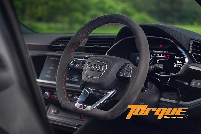 แม้มีสัมผัสแบบสังเคราะห์มากไปหน่อย ทว่าระบบบังคับเลี้ยวไฟฟ้าของ RS Q3 ก็ยังนับว่ายอดเยี่ยม สื่อสารชัดเจน, ตอบสนอง และมีน้ำหนักกำลังดี เมื่อรวมกับระบบ Quattro แล้ว ส่งให้การบังคับควบคุมเฉียบคมอย่างมาก