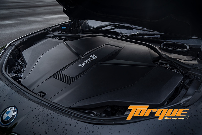 ใต้ฝาครอบพลาสติกเป็นที่อยู่ของชุดขับเคลื่อนไฟฟ้า… BMW i7 ใช้มอเตอร์ 2 ตัว โดยชุดสำหรับขับเคลื่อนล้อคู่หน้าให้กำลังสูงสุด 255 แรงม้า (bhp) และ 308 แรงม้า (bhp) ที่มอเตอร์ของล้อคู่หลัง เมื่อทำงานพร้อมกันจะให้กำลังสูงสุดถึง 544 แรงม้า และมีแรงบิดมหากาฬที่ 745 นิวตันเมตร เร่งจากจุดหยุดนิ่งสู่ 100 กม./ชม. ได้ใน 4.7 วินาที และความเร็วสูงสุดถูกจำกัดไว้ที่ 240 กม./ชม. ตัวมอเตอร์ไฟฟ้าทั้งสองชุดใช้โรเตอร์แบบเคลื่อนที่ได้ (แทนโรเตอร์แบบตายตัว) ด้วยวิธีนี้ทำให้สามารถลดปริมาณแร่หายากที่นำมาใช้ในการผลิตลงได้อย่างมาก