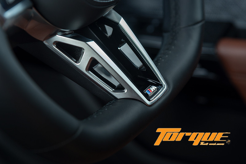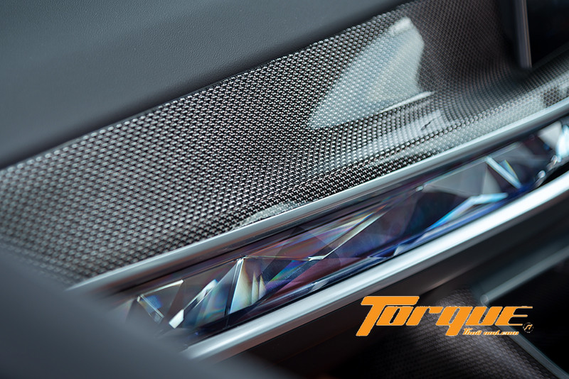 ‘BMW Interact Bar’ แถบพื้นผิวคริสตัลที่พาดยาวตลอดแนวจากส่วนกลางแดชบอร์ดโอบล้อมไปยังแผงประตูคู่หน้า ทำหน้าที่หลัก 2 ประการด้วยกันคือ บนแดชบอร์ดเป็นแผงควบคุมระบบสัมผัสสำหรับสั่งงานระบบปรับอากาศ, ปรับช่องแอร์, เปิดลิ้นชักเก็บของ (ฝั่งผู้โดยสาร) และเปิดไฟฉุกเฉิน ขณะที่บนแผงประตูเป็นปุ่มสัมผัสของชุดล็อคประตูและการตั้งตำแหน่งเบาะนั่ง ประการต่อมาคือเป็นไฟ Ambient ที่นอกจากจะช่วยสร้างบรรยากาศในห้องโดยสารด้วยไฟสีต่างๆ (เปลี่ยนได้จากปุ่ม My Modes) แล้ว ยังทำหน้าที่โต้ตอบการผู้โดยสารในรถด้วยการแสดงแสงไฟแบบไดนามิกรูปแบบต่างๆ เช่น เมื่อคุณสั่งงานด้วยเสียง ไฟของ Interact Bar จะกระพริบพร้อมกับเสียงโต้ตอบกลับ หรือกระพริบเมื่อมีสายเรียกเข้า เป็นต้น แน่นอนว่า คุณสามารถปรับและเลือกรูปแบบการโต้ตอบได้หลากหลายในเมนู Ambient Lighting