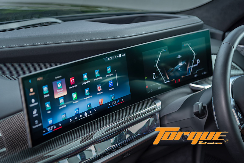 จอแสดงผลทรงโค้ง ‘BMW Curved Display’ ประกอบด้วยจอขนาด 12.3 นิ้ว สำหรับผู้ขับขี่ และจอส่วนกลางขนาด 14.9 นิ้ว ระบบสัมผัส ออกแบบกราฟฟิกและอินเตอร์เฟซของเมนูต่างๆ ให้ใกล้เคียงกับที่เรามักเห็นอยู่ในสมาร์ตโฟนจึงสามารถเข้าใจและใช้งานได้ง่ายยิ่งขึ้น ความคมชัดของภาพและสีสันอยู่ในระดับสูงมาก ทั้งยังสามารถปรับแต่งการแสดงผลได้หลากหลายอีกด้วย