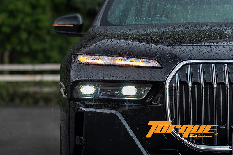 ชุดไฟหน้าที่แตกต่างออกไปจาก BMW ที่พวกเราเคยรู้จักโดยสิ้นเชิง แถบไฟ DRL ตกแต่งด้วยคริสตัลจาก Swarovski จัดเรียงเป็นทรงอักษร L โดยแต่ละชิ้นใช้หลอดไฟ LED ถึง 14 ดวง สำหรับเป็นทั้งไฟ Marker และ DRL นอกจากนั้นยังมีไฟ LED อีก 22 ดวง ใช้ส่องกระทบไปยังด้านหลังของแท่งคริสตัลให้เกิดเป็นเอฟเฟคท์ระยิบระยับยามค่ำคืน ส่วนแท่งไฟชิ้นล่างคือไฟเลี้ยวและ DRL หลัก ไฟหน้าซ่อนตัวอยู่ในกรอบสีดำ ใช้ไฟส่องสว่างแบบ LED พร้อมระบบอแดปทีฟและไฟสูงอัตโนมัติ