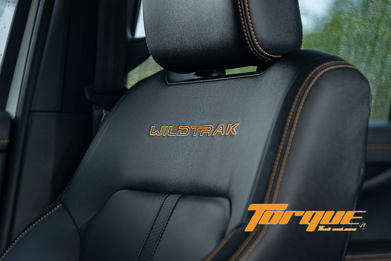 ภายในห้องโดยสาร เรียกว่าค่อนข้างคุ้นเคยดีกับภาพรวมงานดีไซน์ ส่วนสิ่งที่เพิ่มเติมขึ้นมา คือ การยกระดับของอารมณ์ความสปอร์ตจากการเน้นโทนสีดำ ตัดกับการเดินด้ายสีส้ม ที่พร้อมการประทับตราสัญลักษณ์ “Wildtrak” ในรายละเอียดต่างๆ