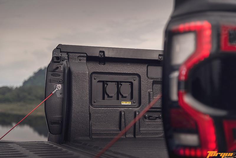 เต็มไปด้วยจุดชาร์จไฟทั่วทั้งห้องโดยสาร มีตั้งแต่ระบบชาร์จไร้สาย, USB, ช่องต่อไฟ 12 โวลต์ และปลั๊กสำหรับต่อไฟ 230 โวลท์ ที่รองรับสูงสุดถึง 400 วัตต์ เช่นเดียวกับในกระบะท้าย นอกจากนั้นยังมีช่อง AUX สำหรับต่ออุปกรณ์ไฟฟ้าต่างๆ ติดตั้งมาให้อีกด้วย ส่วนด้านข้างของกระจกมองหลังก็มีช่อง USB สำหรับต่อ On-board Camera มาให้พร้อมสรรพ ไม่ต้องลากสายระโยงรยางค์อีกต่อไป