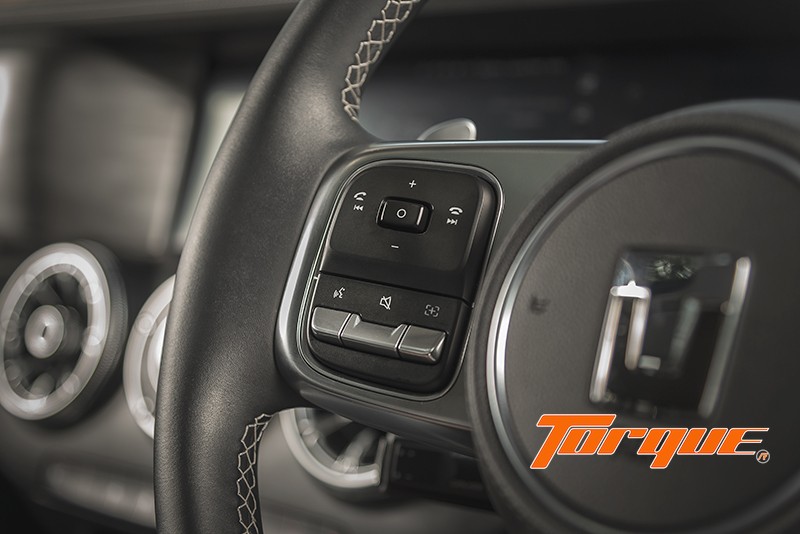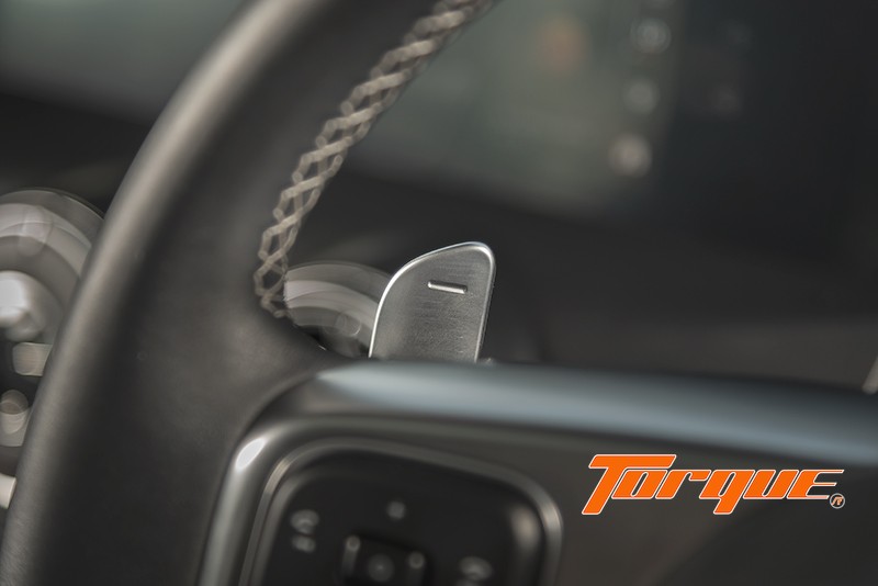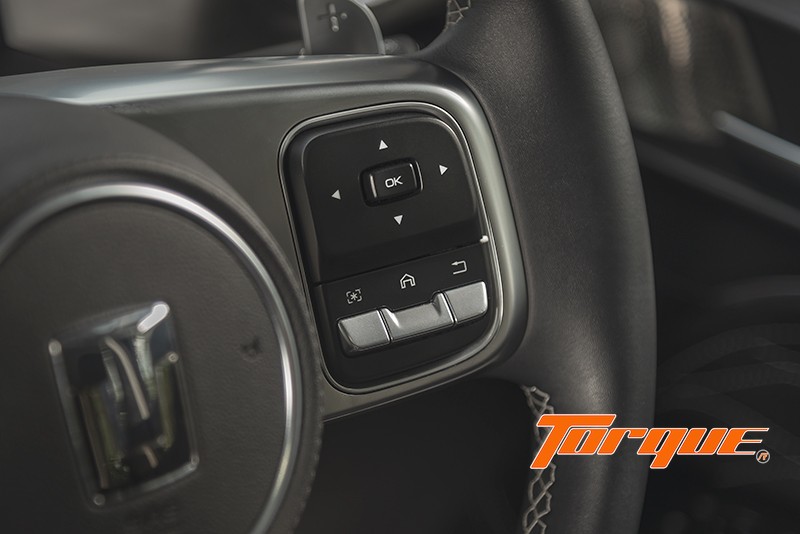 รับกับพวงมาลัยมัลติฟังก์ชั่นหุ้มหนังที่สามารถควบคุมหน้าจอแสดงข้อมูลขับขี่ และเครื่องเสียง ขณะที่ด้านหลังมากับปุ่ม Paddle Shift ควบคุมการเปลี่ยนเกียร์ ช่วยเพิ่มความเร้าใจในการขับขี่ได้ง่ายยิ่งขึ้น