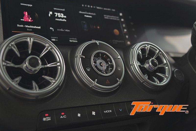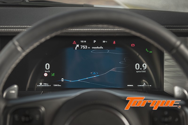 ตามด้วยหน้าจอแสดงข้อมูลความละเอียดสูง ขนาด 12.3 นิ้ว สำหรับแสดงข้อมูลต่างๆ ให้ผู้ขับขี่ เช่น ความเร็ว, รอบเครื่องยนต์, ตำแหน่งเกียร์, ระบบขับเคลื่อน, ระบบนำทาง ตลอดจนสถานะของระบบต่างๆ