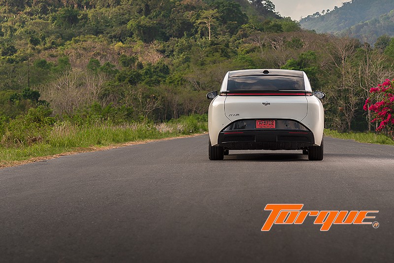 สิ่งที่น่าทึ่งก็คือ JY Air ราคาไม่ถึงล้าน ได้รับ 5 ดาวจาก NCAP ยุโรป นั่นไม่ใช่เรื่องง่ายเลยในการออกแบบโครงสร้างตัวถังซึ่งไม่มีคานขวางค้ำบนหลังคา (กระจกเต็มบาน แบบเดียวกับ Tesla, Porsche Taycan) รูปทรงโดยรวมของรถชวนให้นึกถึง Prius ใช้ฐานล้อยาว 2.8 เมตร ช่วยให้ห้องโดยสารกว้างขวางอย่างยิ่ง ทั้งยังมีส่วนทำให้ได้ความนุ่มนวลมากขึ้นขณะขับขี่ นอกจากนั้น การวางล้อทั้งสี่ไว้ปลายสุดของรถส่งให้น้ำหนักส่วนใหญ่รวมอยู่ที่ส่วนกลางตัวถัง ซึ่งมีผลดีด้านการสมดุลน้ำหนักหน้าหลัง น่าเสียดายที่ช่วงล่างนุ่มนิ่มมากไป Air จึงไม่สามารถใช้ประโยชน์ด้านสมรรถนะจากสิ่งเหล่านี้ได้เต็มที่นัก