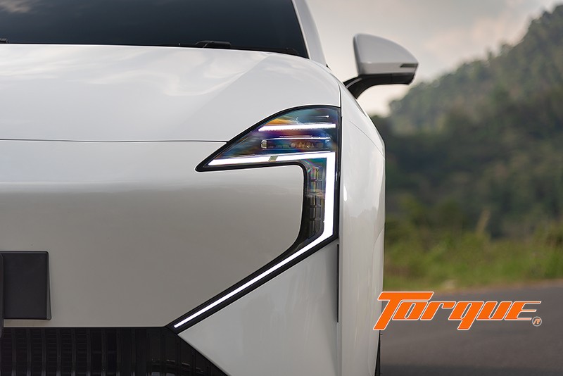 ไฟหน้าที่บางเฉียบเพียง 15 มม. ดีไซน์ล้ำสมัยและการจัดเรียงที่สลับซับซ้อน ให้ภาพลักษณ์ที่แปลกใหม่กว่ารถทั่วไปในท้องตลาด คุณสามารถเลือกรูปแบบการวิ่งของไฟ DRL (เมื่อปลดล็อครถ) ได้ 3 แบบ ผ่านหน้าจอส่วนกลาง