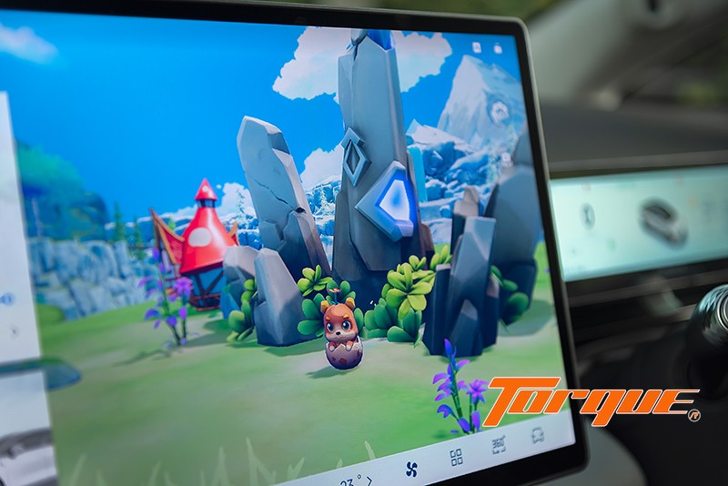 … ทุกฟังก์ชั่นถูกรวบรวมไว้ในจอแสดงผลส่วนกลางขนาดใหญ่ถึง 15.6 นิ้ว นั่นทำให้คุณต้องใช้เวลาพอสมควรในการหันไปมองจอเพื่อหาสิ่งที่คุณต้องการ และทำให้ระบบ DMS แจ้งเตือนเนื่องจากคุณไม่ได้มองถนนนานเกินไป… นอกจากการควบคุมและอินโฟเทนเมนต์ต่างๆ แล้ว ยังมาพร้อมกับลูกเล่นหยุมหยิมอีกมากมาย ไม่ว่าจะเป็นเกมต่างๆ, โหมดแคมปิ้ง, กราฟฟิกรถสีเดียวกับสีตัวถังจริง และแสดงการเปิดปิดไฟหน้าและไฟท้ายรถแบบเรียลไทม์ เป็นต้น ที่ขาดไม่ได้คือรองรับการเชื่อมต่อแบบไร้สายได้ทั้ง Android Auto และ Apple CarPlay
