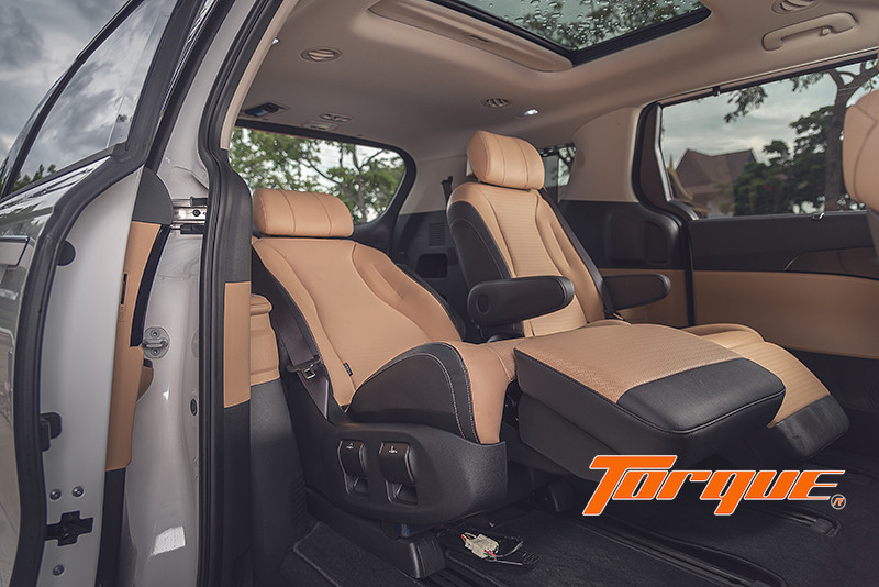ในเรื่องของความอเนกประสงค์ ถูกใจแน่นอนกับความสามารถในการปรับเปลี่ยนตามความต้องการ กับเบาะนั่งระบบ Premium Relaxation Seat ให้ผู้โดยสารแถว 2 ปรับเอนนอนได้ ทั้งยังมีพนักพิงหลัง และที่พักขาปรับไฟฟ้า ให้ปรับระดับได้เต็มรูปแบบ แถมยังมีระบบอุ่นเบาะ และระบบระบายอากาศเบาะ ที่บอกเลยว่าเหมือนกับนั่งเครื่องบินชั้น Business Class เลยทีเดียว