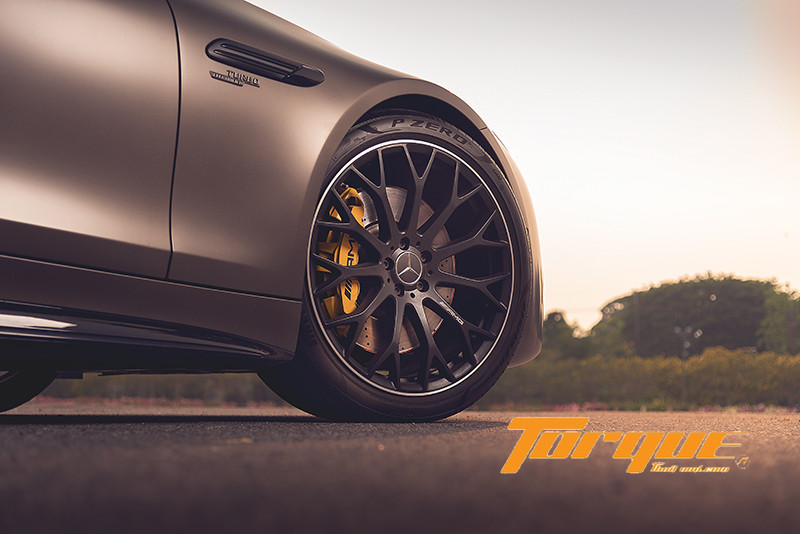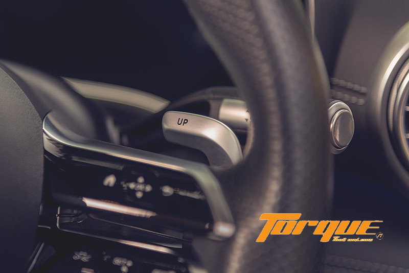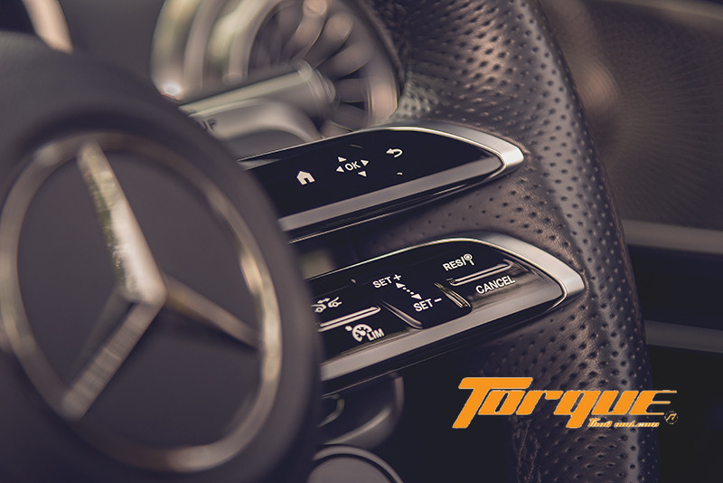 คันทดสอบติดตั้งแพคเกจ AMG DYNAMIC PLUS มาให้ด้วย นั่นหมายถึงนอกจาก 5 โหมดมาตรฐาน (Slippery, Comfort, Sport, Sport+ และ Individual) แล้ว คุณยังได้โหมดพิเศษ “RACE” เพิ่มมาอีกด้วย ที่โหมดนี้ ระบบจะปรับให้รถพร้อมสำหรับการขับขี่เพื่อแข่งขันมากขึ้น ด้วยเครื่องยนต์และคันเร่งที่ตอบสนองฉับไวเป็นพิเศษ นอกจากนั้น ในแพคเกจยังมาพร้อมกับจุดยึดแท่นเครื่องแบบไดนามิกส์ ซึ่งสามารถแปรผันความยืดหยุ่นได้ตามรูปแบบการขับขี่ จากนุ่มนวลเพื่อการขับขี่ปกติไปจนถึงขึงตึงสำหรับใช้ในสนามแข่ง, เฟืองท้ายพร้อมลิมิเต็ดสลิปควบคุมด้วยอิเลกทรอนิกส์, ช่วงล่างเตี้ยกว่าเดิม 10 มม. และคาลิเปอร์เบรกสีเหลือง