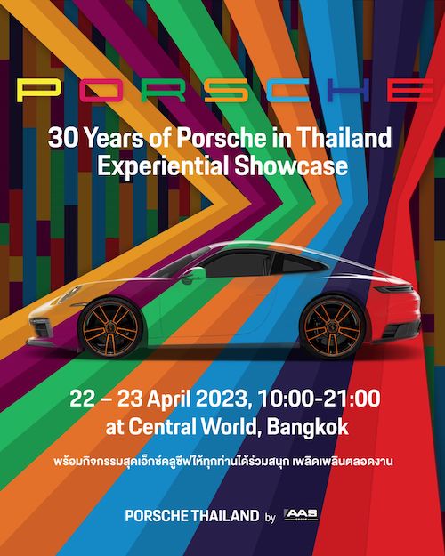 ปอร์เช่ ประเทศไทย โดย เอเอเอส กรุ๊ป เตรียมจัดงาน “30 Years of Porsche in Thailand Experiential Showcase“ สร้างแลนด์มาร์กแห่งใหม่ใจกลางกรุงเทพฯ นำรถไฮไลท์ ปอร์เช่ 911 Carrera GTS – 30 Years Porsche Thailand Edition ยนตกรรมรุ่นพิเศษแห่งการเฉลิมฉลองวาระครบรอบ 30 ปี คันแรกและคันเดียวในโลก มาจัดแสดงในงาน ให้บรรดาแฟนคลับปอร์เช่ได้สัมผัสกันอย่างใกล้ชิด