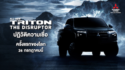 บริษัท มิตซูบิชิ มอเตอร์ส (ประเทศไทย) จำกัด เปิดตัวทีเซอร์รถกระบะรุ่นใหม่ “ออล-นิว ไทรทัน” พร้อมประกาศแคมเปญพิเศษ “ออล-นิว ไทรทัน ขับมันส์ ก่อนใคร !” (ALL-NEW TRITON REV UP & WIN) สุดเอ็กซ์คลูซีฟเฉพาะลูกค้าในไทย ก่อนเผยโฉมเต็มตารอบเวิลด์พรีเมียร์ในประเทศไทย และประกาศราคาอย่างเป็นทางการในวันที่ 26 กรกฎาคมนี้