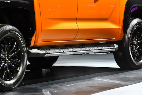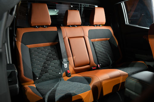 และคิ้วกันกระแทกประตูที่ช่วยเสริมรูปลักษณ์อันแข็งแกร่งทรงพลัง ตราสัญลักษณ์ที่กระจังหน้าเติมเต็มความสะดุดตา และพื้นปูกระบะซึ่งเป็นอุปกรณ์ที่ขาดไม่ได้ในรถกระบะก็มีให้เลือกเช่นกัน