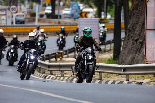 สำหรับกิจกรรมวันแรก เรานัดรวมตัวกันที่ ตัวแทนจำหน่าย บาจาจ สาขาอ้อมใหญ่ จ.นครปฐม เพื่อลงทะเบียนและรับฟังบรีฟเส้นทาง ชี้แจงข้อมูลสำคัญสำหรับการขับขี่ ซึ่งหลังจากที่ทราบกฏการขับขี่และเส้นทางการเดินทางแล้ว ขบวน Bajaj Dominar ทั้ง 15 คัน ก็เริ่มเดินทาง