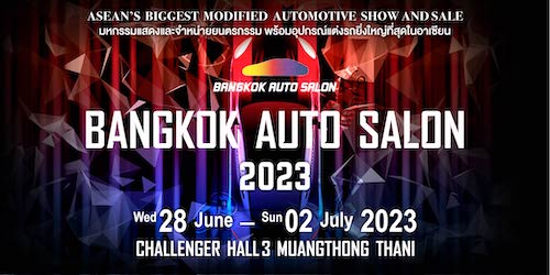 พบกับ มหกรรมแสดงและจำหน่ายยนตรกรรม พร้อมอุปกรณ์แต่งรถยิ่งใหญ่ที่สุดในอาเซียน ‘แบงค็อก ออโต ซาลอน 2023’ เริ่มตั้งแต่ วันที่ 28 มิถุนายน – วันที่ 2 กรกฎาคม 2566 ณ อาคารชาเลนเจอร์ฮอลล์ 3 อิมแพ็ค เมืองทองธานี