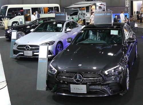 เบนซ์ทองหล่อ จัดแสดงหลากหลายรุ่น อาทิ เบนซ์ EQS รถยนต์ไฟฟ้าล้วน 100% วิ่งได้ไกลถึง 700 กม. เฉพาะในงานแถมฟรี Wall Box Guarantee 5 ปี Maintenance 5 ปี, E300e AMG ให้ส่วนลดกว่า 500,000 บาท และ C350e แถมประกันชั้น 1 ฟรี และสำหรับบูธ motor home ในเครือเบนซ์ทองหล่อ