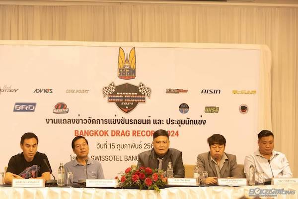 คุณมนตรี บุญรัตนากร จับมือกับ คุณวุฒา ใจสำราญ ผู้บริหารเว็บไซต์ Boxzaracing.com พร้อมด้วย ส.ส.ไผ่ ลิกค์ ประธานที่ปรึกษาการจัดงาน ร่วมแถลงข่าวงานแข่งรายการ “Bangkok Drag Record 2024” รายการแข่งรถยนต์ทางตรงระยะ402 เมตร ตามมาตรฐานของการแข่งขันรถยนต์ ชิงแชมป์ประเทศไทยอย่างเป็นทางการ ที่ไม่จำกัดรุ่นและยี่ห้อ