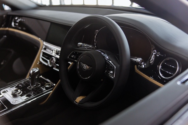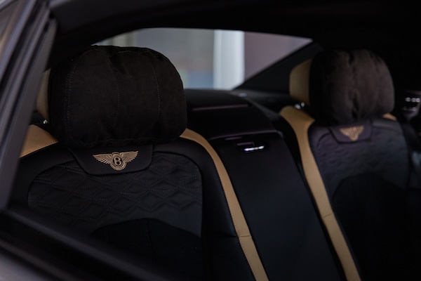 และเมื่อเปิดประตูเข้าสู่ห้องโดยสาร แขกผู้ร่วมกิจกรรมได้ชมความงดงามของเทคโนโลยี Animated LED Welcome Lamps โลโก้เบนท์ลีย์แบบแอนิเมชันที่ส่องลงบนพื้นเมื่อเปิดประตู พร้อมสร้างภาพเคลื่อนไหวเพื่อเป็นการต้อนรับเข้าสู่ภายในห้องโดยสารที่ตกแต่งอย่างสปอร์ตแต่แฝงไปด้วยความหรูหราที่ประณีตและงดงามผ่านการเล่นสีของหนังเฉดสีดำ Beluga
