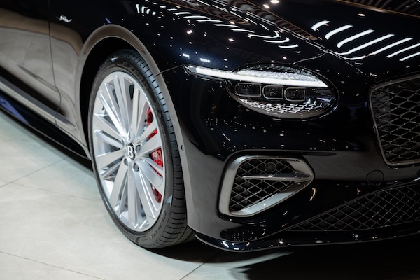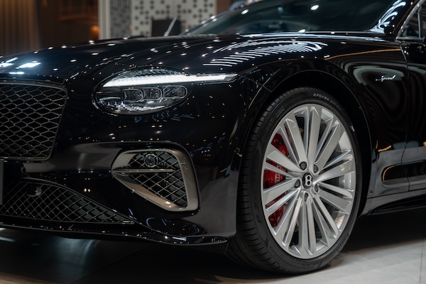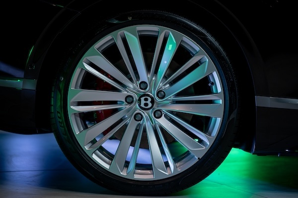 สำหรับตัวรถที่จัดแสดงมากับความสปอร์ตในเฉดสีดำ Onyx ที่เคยเป็นสีเปิดตัวในรุ่น Continental Flying Spur Speed พร้อมด้วยล้ออัลลอยด์แบบ Speed Wheel 10 ก้าน ขนาด 22 นิ้วที่มีรูปลักษณ์ที่ร่วมสมัย โดดเด่น และคาร์ลิปเปอร์เบรกสีแดงที่เข้ากันกับกระจังหน้าแบบ Dark Tint Grilles สีเข้ม สะท้อนสมรรถนะอันยอดเยี่ยมของแกรนด์ทัวเรอร์ระดับซูเปอร์คาร์ของแบรนด์รถยนต์เบนท์ลีย์ได้อย่างสมบูรณ์แบบ