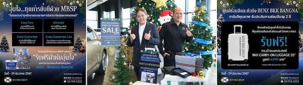 เบนซ์ บีเคเค กรุ๊ป – บางนา จัดเต็ม! มหกรรมความสุขส่งท้ายปี พร้อมสร้างความตื่นเต้นให้กับตลาดอย่างต่อเนื่องเนรมิตโชว์รูมให้เป็นพื้นที่แห่งความสุข อัดแคมเปญทั้งโชว์รูม และศูนย์บริการ โดยเริ่มตั้งแต่ตกแต่งโชว์รูม และศูนย์บริการครบวงจรที่ใหญ่ที่สุดในเอเซีย ในธีม “Happy Merry Christmas” เพื่อต้อนรับเทศกาลแห่งความสุขส่งท้ายปีเก่า ต้อนรับปีใหม่ ให้ลูกค้าที่เข้ามารับบริการที่โชว์รูม
