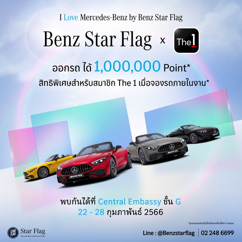 ในงาน “I Love Mercedes-Benz by Benz Star Flag” ทาง เบนซ์ สตาร์แฟลก ยังมอบสิทธิพิเศษ สำหรับสมาชิก The One Card ด้วยการแจกพ้อยส์ รวมมูลค่าถึง 1 ล้านพ้อยส์ ให้กับลูกค้าที่จองรถภายในงานและออกรถภายในวันที่ 20 มีนาคมศกนี้