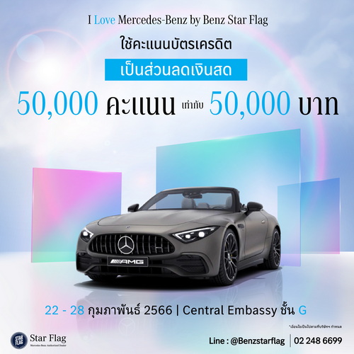 ส่วนผู้ถือบัตรเครดิตที่ร่วมรายการ สามารถนำพ้อยส์ มาแลกเป็นส่วนลดได้สูงสุดถึง 50,000 บาท ขณะที่ลูกค้าที่อยาก Trade-in กับ Benz Star Flag ก็สามารถทำได้เลย โดยจะได้รับส่วนลดเพิ่มมูลค่าสูงสุดถึง 100,000 บาท