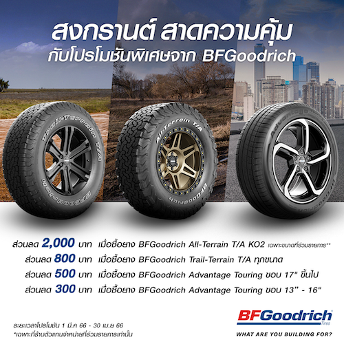 • รับส่วนลด 500 บาท เมื่อซื้อยาง BFGoodrich Advantage Touring ขอบ 17 นิ้ว ขึ้นไป