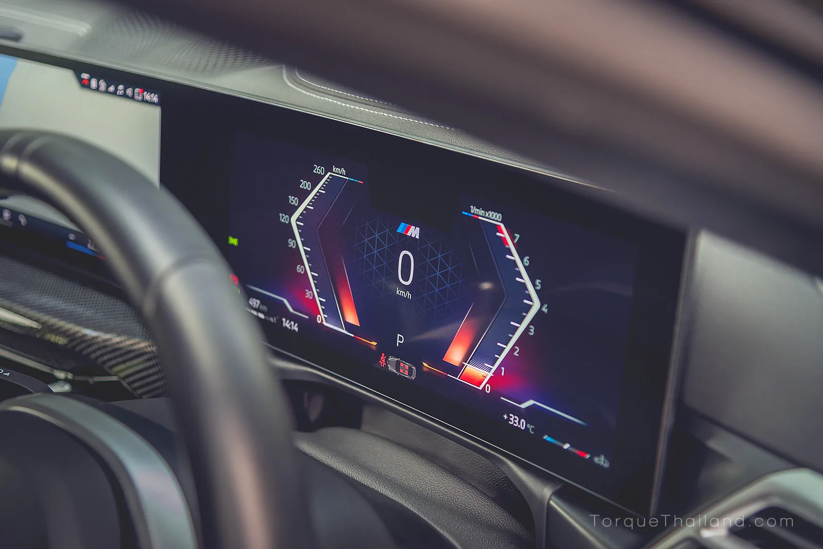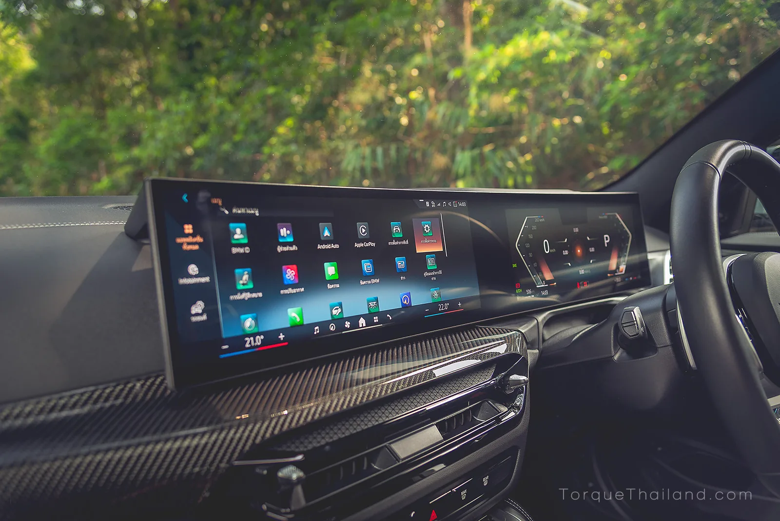 BMW 430i รุ่นปรับโฉม เปลี่ยนจากจอแยกแบบปกติมาใช้จอทรงโค้ง ‘BMW Curved Display’ ระบบสัมผัส ทำงานด้วยระบบปฏิบัติการเวอร์ชั่นล่าสุด ‘BMW Operating System 8.5’ จากการลองใช้ของเราพบว่าทำงานได้อย่างรวดเร็วและลื่นไหลทั้งการปัดเลื่อนและเมื่อกดเข้าเมนูต่าง ๆ ไอคอนมีขนาดกลาง ๆ ถ้าคุณไม่ถนัดกดจากจอ ก็ยังมีชุดควบคุม i-Drive ซึ่งเป็นปุ่มหมุนล้อมรอบด้วยปุ่มกด ที่เราคุ้นเคยมานาน ติดตั้งมาให้อยู่ ช่วยให้ใช้งานได้ง่ายและสะดวกขณะขับขี่
