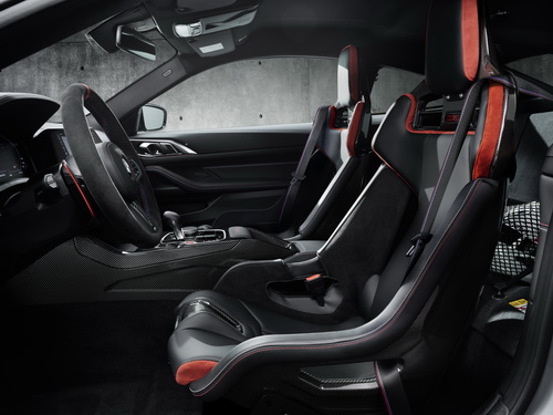 โดยมุมพนักพิงสามารถปรับได้ด้วยตนเอง ในขณะที่ความสูงของเบาะนั่งต้องปรับด้วยข้อต่อแบบสกรูเท่านั้น นอกจากนี้ บีเอ็มดับเบิลยู M4 CSL ยังเน้นการตกแต่งกลิ่นอายสปอร์ต ไม่ว่าจะเป็นพวงมาลัยหนัง M Alcantara เพดานหลังคาสี Anthracite แถบตกแต่งภายในวัสดุคาร์บอนไฟเบอร์ และตราสัญลักษณ์ CSL ที่เบาะนั่ง คอนโซลกลาง แผงคอนโซลหลัง