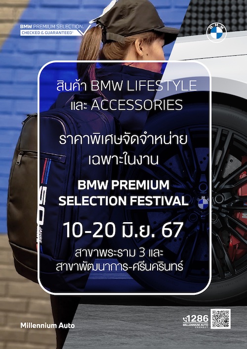 มิลเลนเนียม ออโต้ กรุ๊ป จัดงาน ‘BMW PREMIUM SELECTION FESTIVAL’ นำขบวนรถผู้บริหาร บีเอ็มดับเบิลยู ป้ายแดง ไมล์น้อย ราคาดี การันตีคุณภาพ มาให้เลือกสรรแบบจุใจ พร้อมรับฟรี! GoPro Hero10 และบัตรน้ำมัน 5,000 บาท