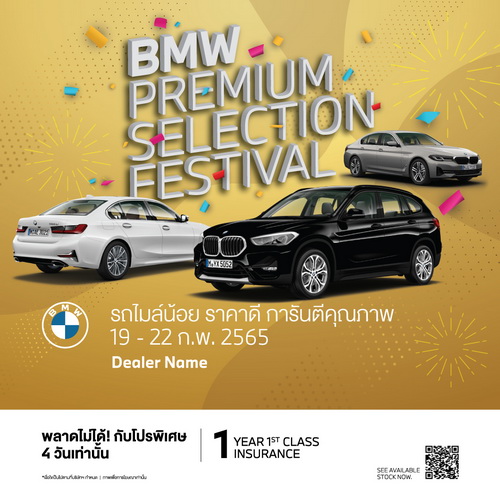 บริษัท มิลเลนเนียม ออโต้ กรุ๊ป จำกัด ผู้แทนจำหน่ายรถยนต์ บีเอ็มดับเบิลยู และ มินิ หยิบยื่นความคุ้มค่าปลายเดือนกุมภาพันธ์ ยกขบวนรถผู้บริหาร บีเอ็มดับเบิลยู ป้ายแดง ไมล์น้อยหลากรุ่น ที่มากับราคาสุดพิเศษ ในงาน ‘BMW Premium Selection Festival’ ระหว่างวันที่ 19-22 กุมภาพันธ์นี้