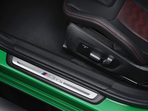 นอกจากนี้ บีเอ็มดับเบิลยู M3 CS ใหม่ยังมาพร้อม เข็มขัดนิรภัยดีไซน์ M ปักสัญลักษณ์ 3 สีของ BMW M กาบประตูสลักตัวอักษร M3 CS หลังคาภายในดีไซน์ M สี Anthracite และพวงมาลัยหุ้ม Alcantara ดีไซน์ M พร้อมแป้นเปลี่ยนเกียร์คาร์บอนไฟเบอร์ และแถบสีแดงบริเวณกึ่งกลางพวงมาลัย