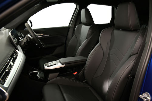 และสี Portimao Blue Metallic (บีเอ็มดับเบิลยู X1 sDrive20i M Sport) ตกแต่งภายในบุด้วยหนังเบาะที่นั่งแบบ Sensatec Perforated สีดำ