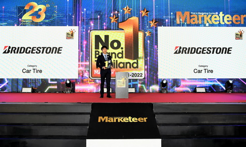 คุณบัณฑิต จันทรคณา ผู้จัดการส่วนงานการตลาดปฏิบัติการ บริษัท บริดจสโตนเซลส์ (ประเทศไทย) จำกัด รับรางวัลเกียรติยศ “แบรนด์ยอดนิยมอันดับหนึ่งของประเทศไทย” ประเภทยางรถยนต์ หรือ “No.1 Brand Thailand 2021-2022” ซึ่งมาจากการสำรวจความคิดเห็นของประชาชนทั่วประเทศ โดยนิตยสาร Marketeer ต่อเนื่องเป็นปีที่ 11