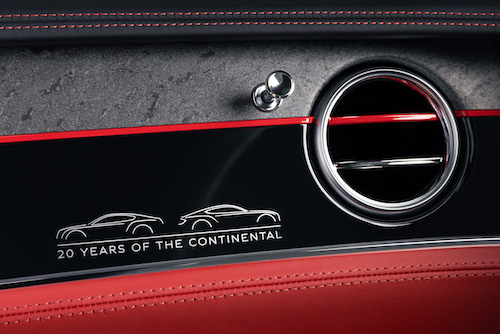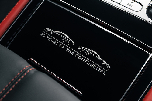 กาบบันไดออกแบบพิเศษฉลอง 20 ปีแห่งอัครยนตรกรรมสปอร์ตคูเป้ด้วยรูปล้ออัลลอยด์ของContinental GT เจนเนอเรชั่นที่ 1 และ เจนเนอเรชั่นที่ 3 เช่นเดียวกับรูปสัดส่วนของตัวรถContinental GT เจนเนอเรชั่นที่ 1 และ เจนเนอเรชั่นที่ 3 บริเวณคอนโซลกลาง และไฟต้อนรับแบบ LED ดีไซน์เฉพาะตัวเพื่อเฉลิมฉลองโอกาสพิเศษนี้