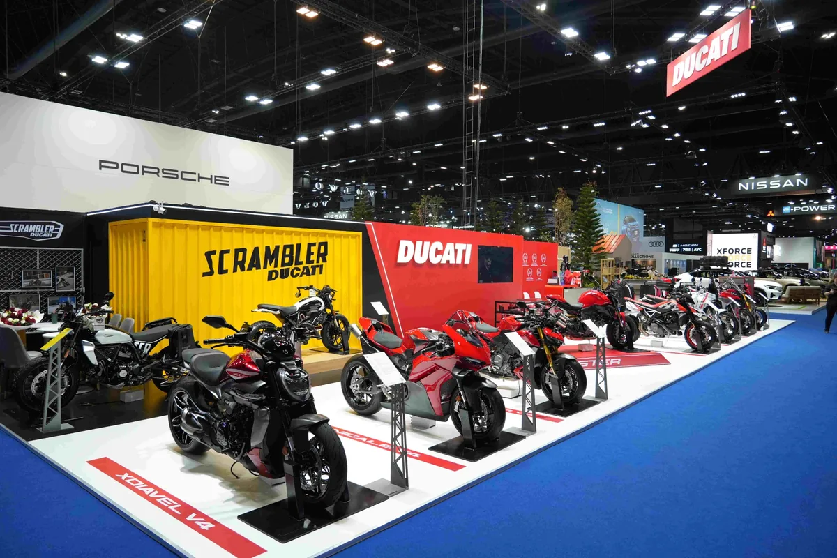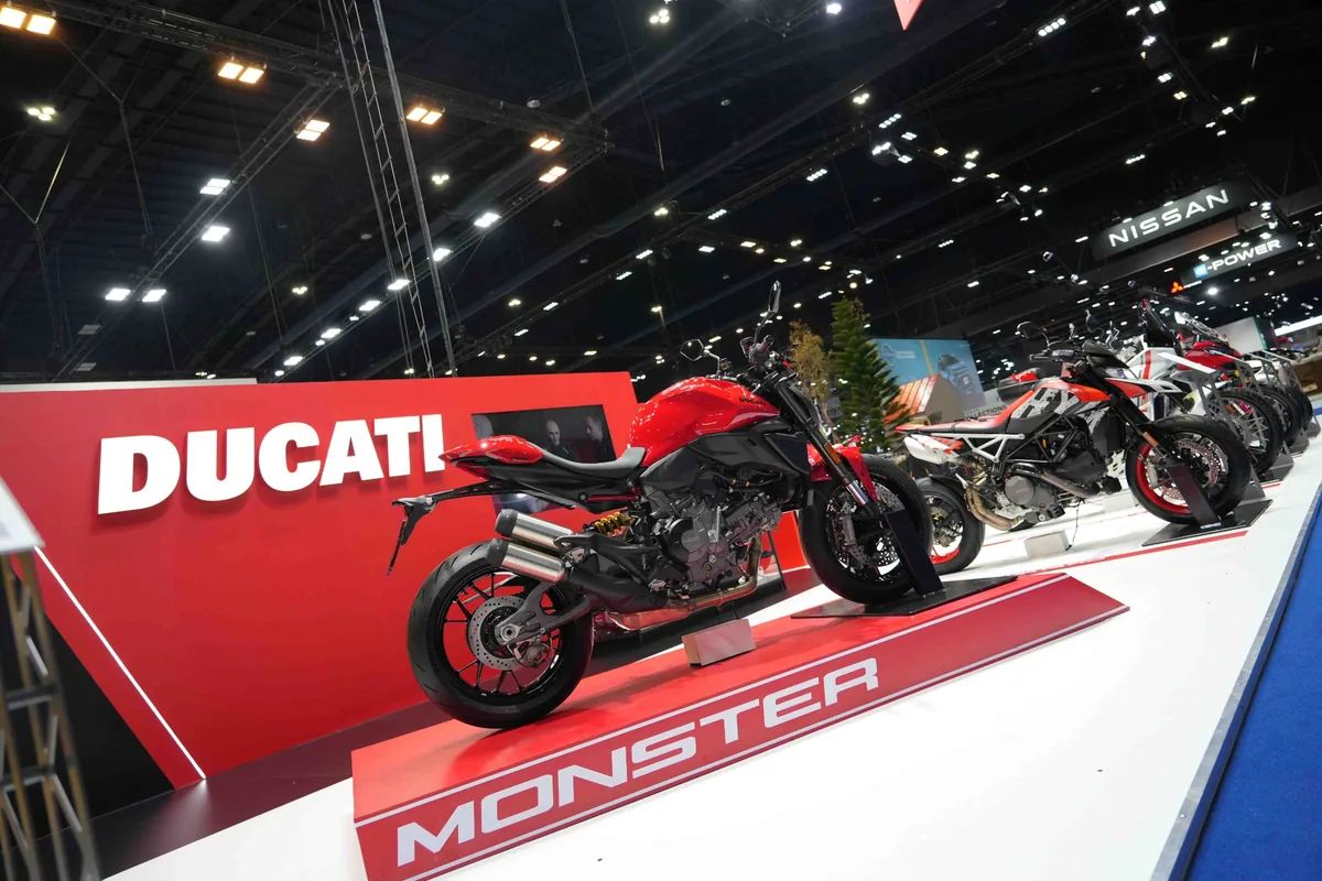 การเปิดตัวครั้งนี้มีขึ้นในวาระสำคัญที่ Ducati ครบรอบ 100 ปี โดยไฮไลต์ของบูธอยู่ที่ New Monster+ สปอร์ตเน็กเก็ตไบค์รุ่นใหม่ที่มาพร้อมเครื่องยนต์ Ducati V2 ขนาด 890 ซีซี กำลังสูงสุด 111 แรงม้า น้ำหนักตัวรถ 175 กิโลกรัม เทคโนโลยีช่วยขับขี่ครบครัน และดีไซน์ใหม่ที่ยังคงเอกลักษณ์ของตระกูล Monster ไว้อย่างชัดเจน ขณะที่ภายในบูธยังมีรถรุ่นเด่นจากหลายเซกเมนต์ รวมถึงรุ่นลิมิเต็ด Scrambler 10th Anniversary Rizoma Edition ซึ่งมีจำหน่ายในประเทศไทยเพียงคันเดียว พร้อมข้อเสนอพิเศษภายในงาน เช่น ประกันภัยชั้น 1 ฟรี ค่าบำรุงรักษา 3 ปี ดอกเบี้ย 0% และส่วนลดสูงสุด 100,000 บาท ตามเงื่อนไขของแต่ละรุ่น